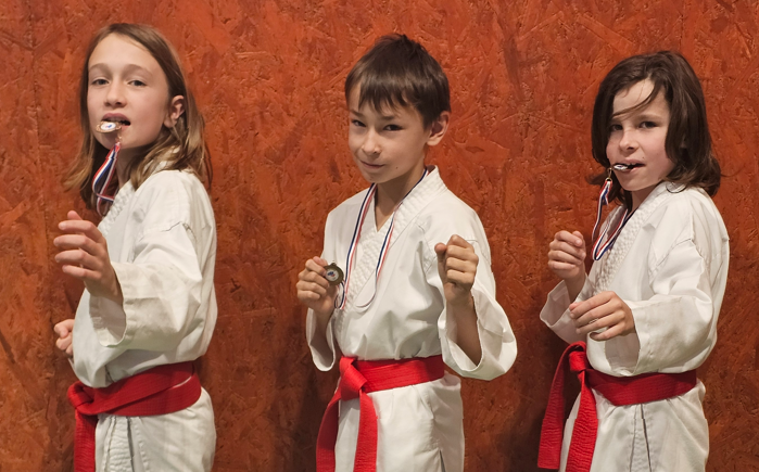 Dans le même temps, nos pupilles ont participé à la nouvelle version de la coupe régionale par équipe. Léo, Jules et Sacha repartent avec une médaille de bronze bien méritée suite à une finale très disputée. Bravo à tous. L’équipe kata composée de Lylou, Jules et Sacha n’obtient pas de médaille, mais tire profit de cette belle expérience.